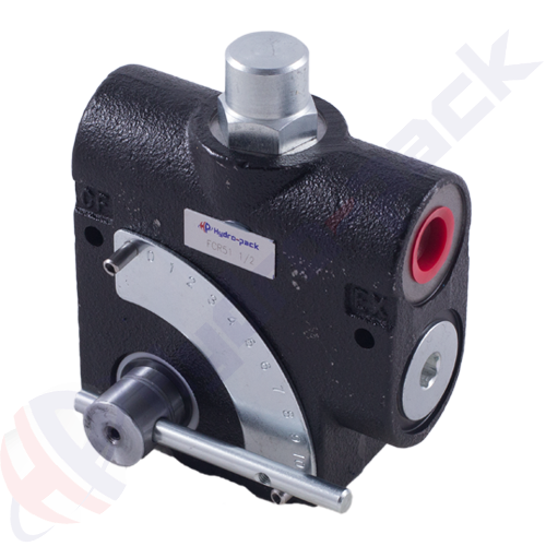 Diese Ventile sind druckkompensierte einstellbare Stromregelventile. Durch Drehen des Griffs kann der Durchfluss aus dem „CF“ oder kontrollierten Durchflussanschluss variiert werden. Jeglicher verbleibender Durchfluss wird zum „EF“- oder Überschussdurchflussanschluss umgeleitet. Sobald der geregelte Durchfluss eingestellt ist, bleibt er bei Druckschwankungen entweder an den geregelten oder überschüssigen Durchflussanschlüssen nahezu konstant. Im Ventilkörper befindet sich ein Überdruckventil. Der EF-Port muss mit dem Öltank verbunden werden.
